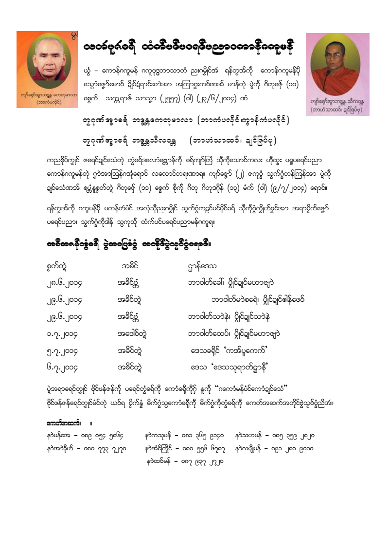 တ္ရဲဏအ် သက္ကရာဇ်ဍုင် ကၠုင်စိုပ် ၁၃၈၈ သၞာံ၊ ဂိတုပသာ် (၂) မံက် မဒှ်တ္ရဲသၞာံတၟိမံက်ရောင်။ ပ္ဍဲကဵုသၞာံတၟိ စမံက်တ္ရဲကၠာအိုတ်ဏအ် ပရိသာတ် ညးမကဵုဇြဟတ် မင်ဗဵုက္လင်ဒၟံင် အစဳအဇန် ဌာန်ပရိုင်ဗၠးၜးမန်-IMNA ကီု သီုအလုံကောန်ဂကူမန်အိုဿီု သြဝ်ကဵုဂွံဒှ်တသိုက်စိုတ် တသိုက်ကာယအိုတ်ညိဂှ်...